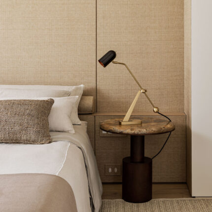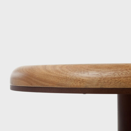 belterra’s central leg has a cylindrical shape, with a wider diameter at the base for added stability. the top is made of 30 mm stone or wood, with a rounded edge for comfortable forearm support.
