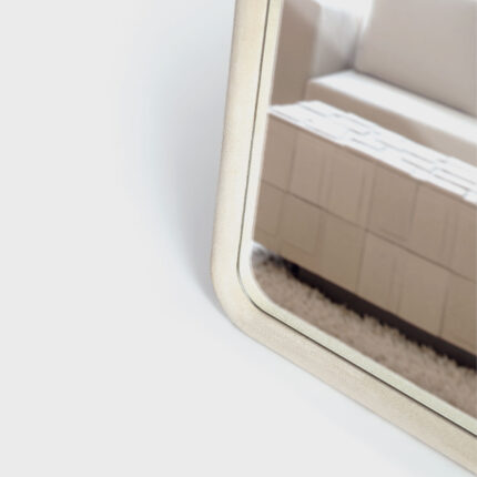 this collection was inspired by the tangram puzzle, composed of geometric shapes that come together to form various figures. the same idea applies to the items in this line, which includes tables with colored glass tops and benches with comfortable suede-covered seats. each piece is fully wrapped in hand-stitched suede, making them truly special. the items are independent, and the line also features a mirror.