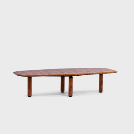 with clean lines and generous proportions, it’s a piece that welcomes. its thin, rounded edge invites touch and encourages lingering. the rounded legs, symmetrically positioned, provide support without imposing — allowing complete freedom around it. the top appears to float, solid and light at the same time.
