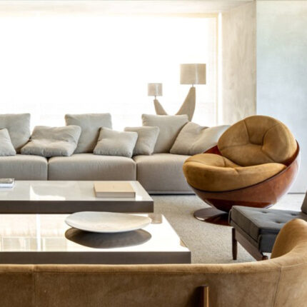 the origin of studio objeto is tied to arthur casas’ projects that had not yet found a path to realization. this collection of lamps had been in the drawer for years. in it, the architect plays with organic forms reminiscent of pebbles, exaggerating their expressiveness as if they were asymmetrically inflated balloons. finding the ideal partner to produce the ceramic bases was a challenge, both due to the size of the pieces and the specific sandy tone and texture. the raw linen shades complete the originality of the set.