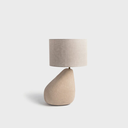 the origin of studio objeto is tied to arthur casas’ projects that had not yet found a path to realization. this collection of lamps had been in the drawer for years. in it, the architect plays with organic forms reminiscent of pebbles, exaggerating their expressiveness as if they were asymmetrically inflated balloons. finding the ideal partner to produce the ceramic bases was a challenge, both due to the size of the pieces and the specific sandy tone and texture. the raw linen shades complete the originality of the set.