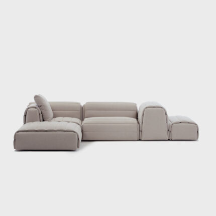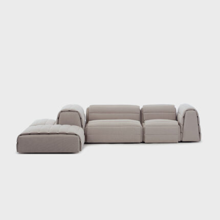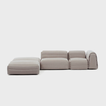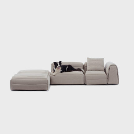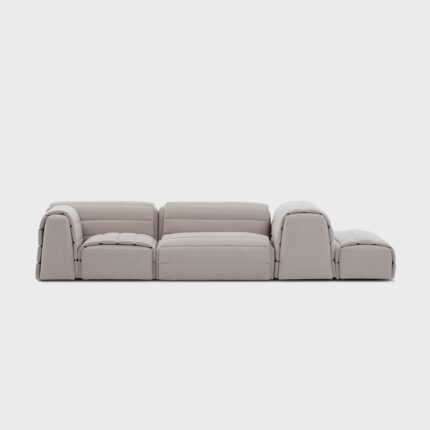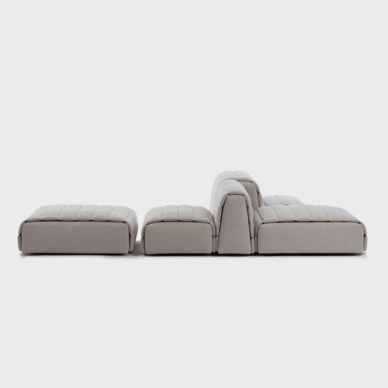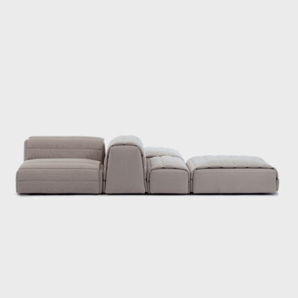 match is a piece without rules—both in style and function. modular in design, it adapts to a variety of spatial layouts. it can divide environments, allowing seating on both sides; it can be used as a sofa bed, include a footrest, be short or long. this versatility comes from the connectors on all sides of each module. its name is a playful nod to the phonetics of “mahjong,” the chinese board game. like in the game, our match allows for diverse and ever-changing configurations, so that each piece can fulfill its best purpose. its relaxed appearance comes from the pillow top that wraps around it.