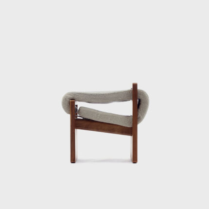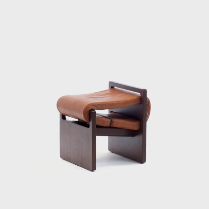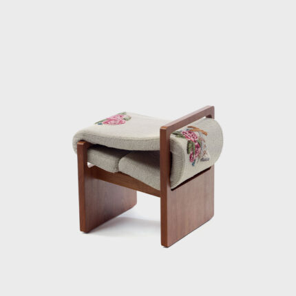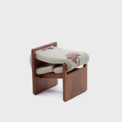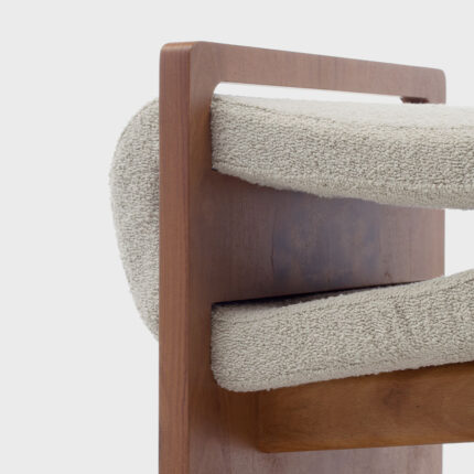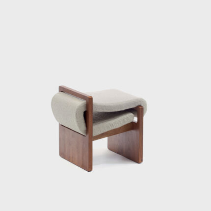 with a wooden structure and seat upholstered in suede, fabric, or leather, meire adapts. it can be discreet or playful.