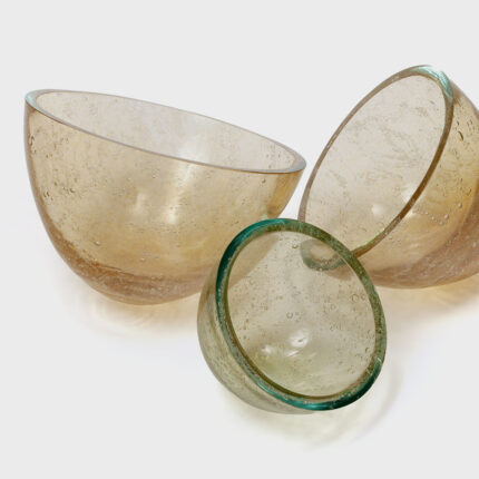 shaped in the heat of the furnaces in gramado (rs), the bambos vases have free, unstable forms that sway gently — as if floating above the surface. they can be used as decorative pieces, as a centerpiece, or functionally: to serve salads, soups, or fruit, using a metal ring that stabilizes their movement.