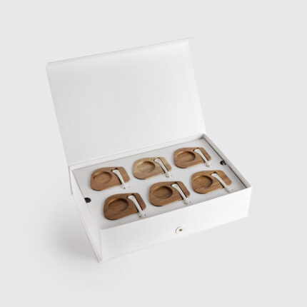 arthur casas has a fascination with designing amorphous shapes — those that, in nature, have no fixed or stable form. it takes many attempts to achieve the ideal contour, as if capturing the perfect moment to freeze something alive and ever-changing. the tea and coffee cups are a result of this exploration. their amorphous handles are surprisingly comfortable, with the perfect angle for finger placement. handcrafted in high-fired ceramic, the cups come with matching ceramic spoons. the saucers are made of wood and treated with tung oil, which ensures resistance to moisture.